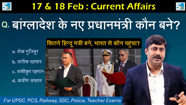यह 17 & 18 फरवरी 2026 का करेंट अफेयर्स है। सरकारी नौकरी के लिए होने वाली प्रतियोगिता परीक्षा की बेहतर तैयारी के लिए डेली करेंट अफेयर्स के सवाल-जवाब यहां बता रहे हैं।