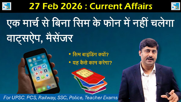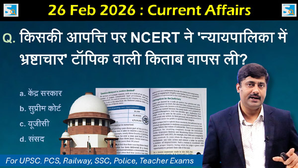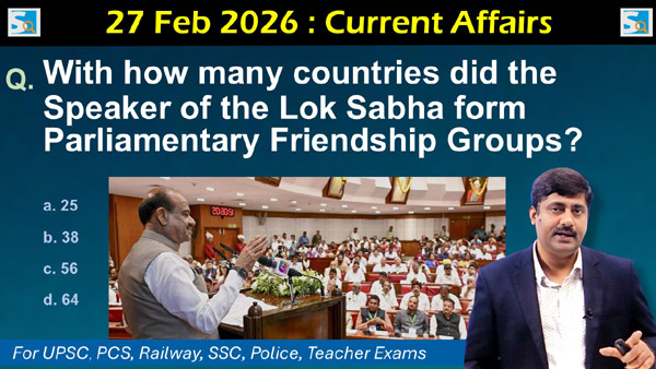 यह 27 फरवरी 2026 का करेंट अफेयर्स है। सरकारी नौकरी के लिए होने वाली प्रतियोगिता परीक्षा की बेहतर तैयारी के लिए डेली करेंट अफेयर्स के सवाल-जवाब यहां बता रहे हैं।