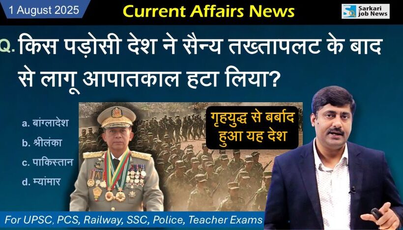 4. किस पड़ोसी देश ने 2021 में तख्तापलट के बाद से लागू आपातकाल 31 जुलाई 2025 को हटा लिया, और चुनाव की घोषणा की?