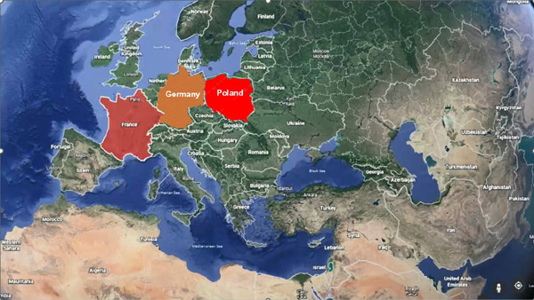 Answer: a. फ्रांस, जर्मनी, पोलैंड
