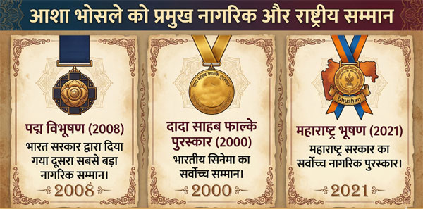 आशा भोसले को प्रमुख नागरिक और राष्ट्रीय सम्मान