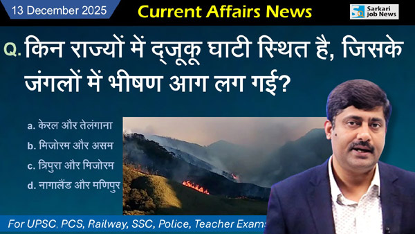 यह 13 December 2025 का करेंट अफेयर्स है। सरकारी नौकरी के लिए होने वाली प्रतियोगिता परीक्षा की बेहतर तैयारी के लिए डेली करेंट अफेयर्स के सवाल-जवाब यहां बता रहे हैं।
