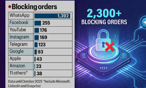 – केंद्रीय गृह मंत्रालय के ‘सहयोग’ पोर्टल के माध्यम से अक्टूबर 2024 और अक्टूबर 2025 के बीच व्हाट्सएप, फेसबुक, यूट्यूब और इंस्टाग्राम सहित 19 ऑनलाइन प्लेटफार्मों को 2,300 से अधिक ब्लॉकिंग आदेश भेजे गए।