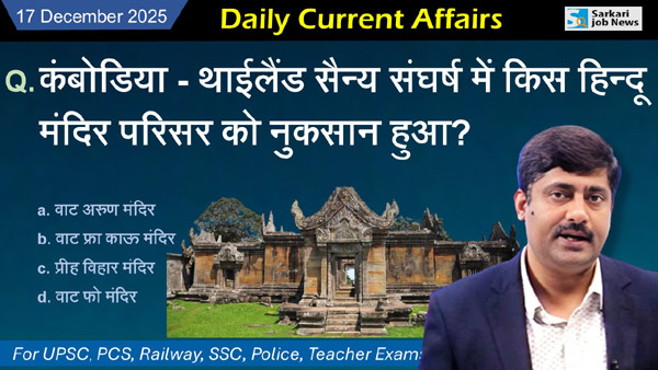 यह 17 December 2025 का करेंट अफेयर्स है। सरकारी नौकरी के लिए होने वाली प्रतियोगिता परीक्षा की बेहतर तैयारी के लिए डेली करेंट अफेयर्स के सवाल-जवाब यहां बता रहे हैं।