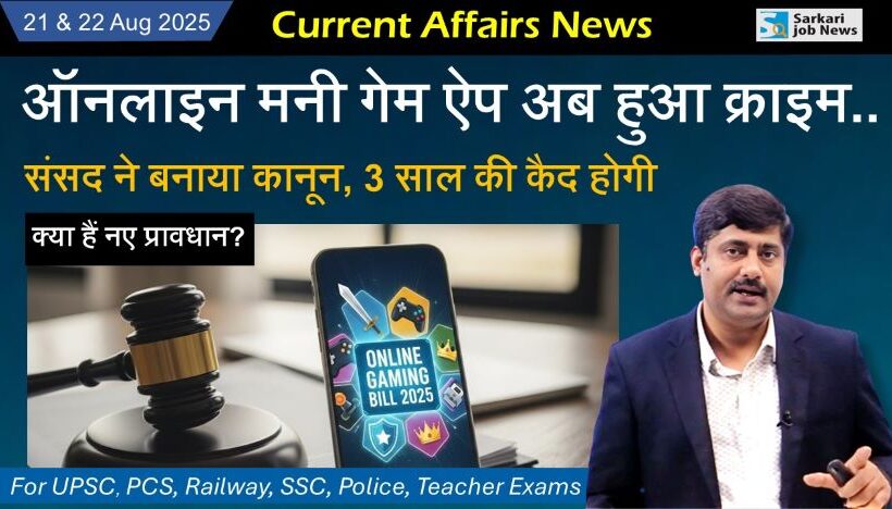 यह 21 & 22 अगस्त 2025 का करेंट अफेयर्स है। सरकारी नौकरी के लिए होने वाली प्रतियोगिता परीक्षा की बेहतर तैयारी के लिए डेली करेंट अफेयर्स के सवाल-जवाब यहां बता रहे हैं।