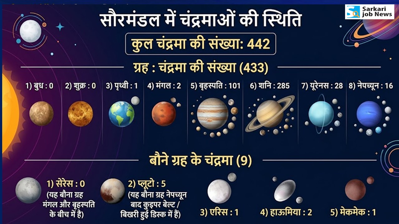 – सौर मंडल में चद्रमाओं की संख्या अब 442 हो गई है।