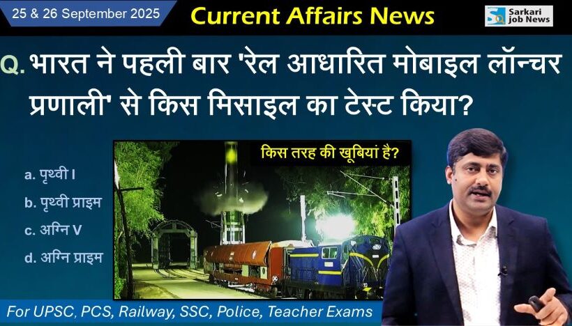 यह 25 & 26 सितंबर 2025 का करेंट अफेयर्स है। सरकारी नौकरी के लिए होने वाली प्रतियोगिता परीक्षा की बेहतर तैयारी के लिए डेली करेंट अफेयर्स के सवाल-जवाब यहां बता रहे हैं।