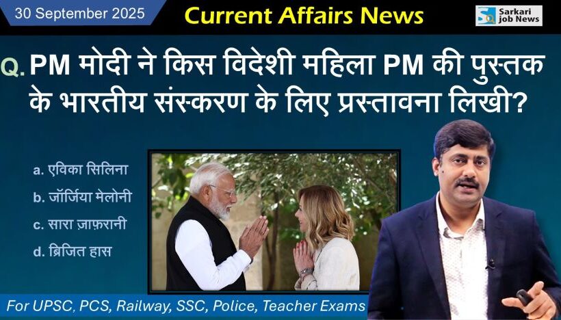 यह 30 सितंबर 2025 का करेंट अफेयर्स है। सरकारी नौकरी के लिए होने वाली प्रतियोगिता परीक्षा की बेहतर तैयारी के लिए डेली करेंट अफेयर्स के सवाल-जवाब यहां बता रहे हैं।