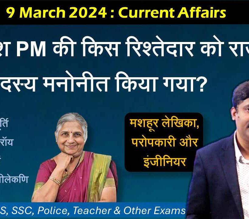 1. राष्ट्रपति द्रौपदी मुर्मू ने किस लेखिका और परोपकारी (Philanthropist) को राज्यसभा के लिए मनोनीत किया, जो ब्रिटिश PM की रिश्तेदार हैं?