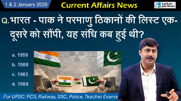 यह 1 & 2 January 2026 का करेंट अफेयर्स है। सरकारी नौकरी के लिए होने वाली प्रतियोगिता परीक्षा की बेहतर…