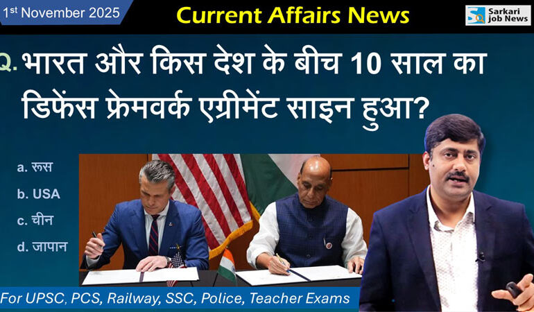This is the current affairs of 1 November 2025. Here are questions and answers of daily current affairs for better…